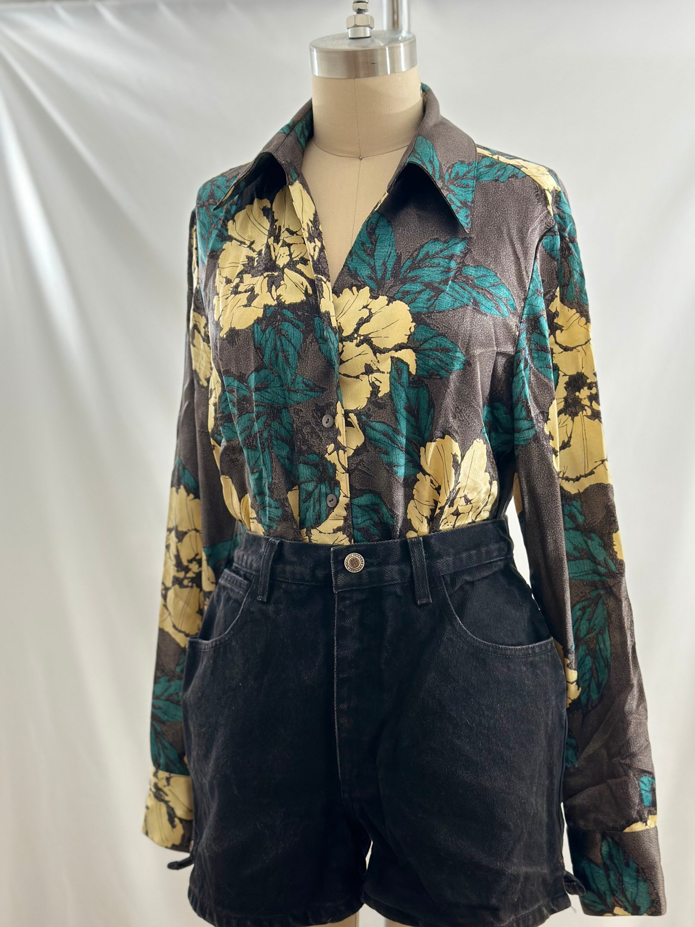 Vintage 90s Ellen Tracy Pure Silk Floral Print Blouse Silk Etsy